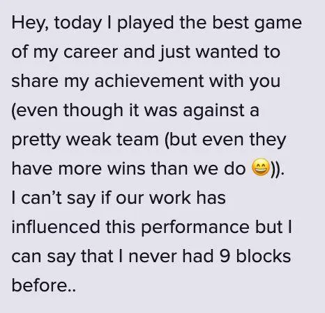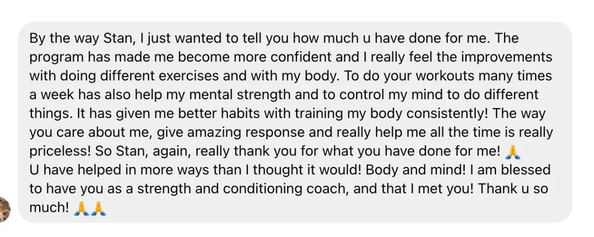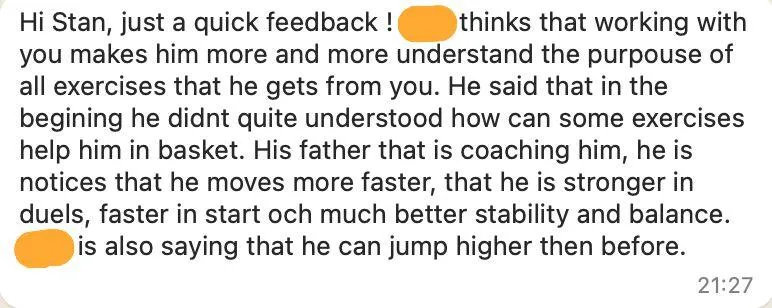 Even though I was out for around 3 months total that didn’t affect our work in the weightroom. Your knowledge on what exercises to do even when you’re injured are out of this world. I have never been in a better shape than after working out with you, and special thanks for giving me the proper exercises to fix my problematic hip.
